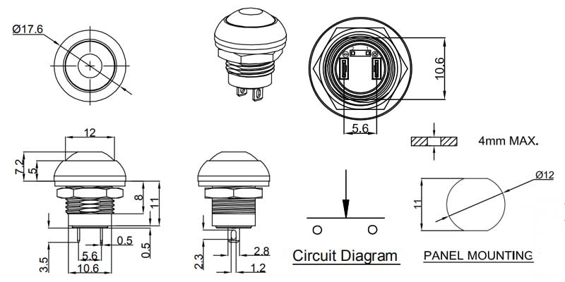 防水按鍵開關M12系列,小尺寸功能齊全,復位常開、常閉,自鎖式,有防水IP65,IP67有配套的防水帽,是戶外設備使用之首選